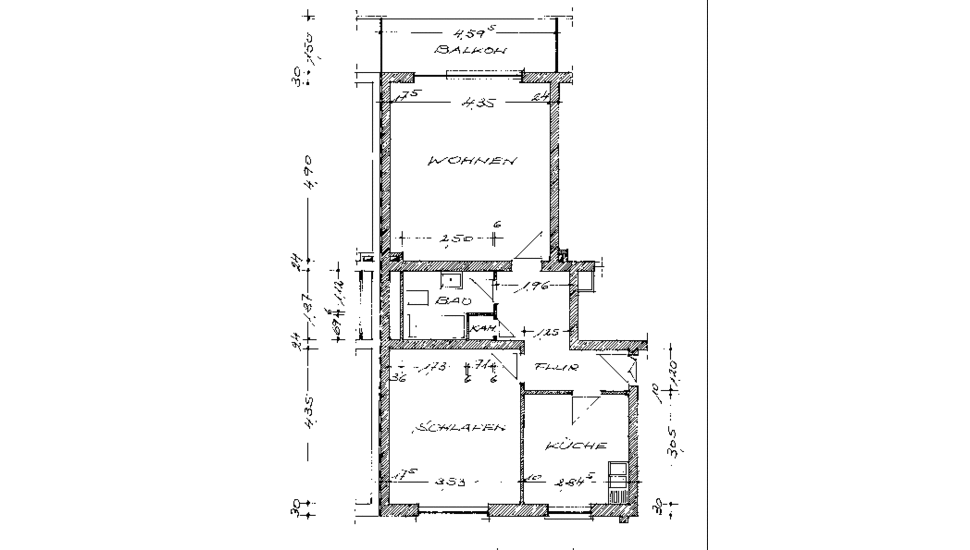- Grundriss der Wohnung mit Bemaßung